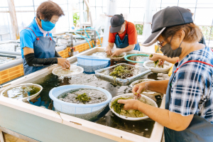 沖縄・糸満で海ぶどうの陸上養殖から始まり、地域資源を活用した体験型観光施設として成長。地域活性と地元雇用の創出を目的に、女性・高齢者、障害者を積極的に雇用し、6次産業化によって地域と共に新たな価値の創造を目指している。